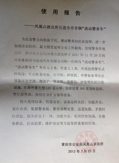 相關(guān)新聞報(bào)道: 福建莆田再次采購(gòu)鴻馬移動(dòng)警務(wù)室 |
