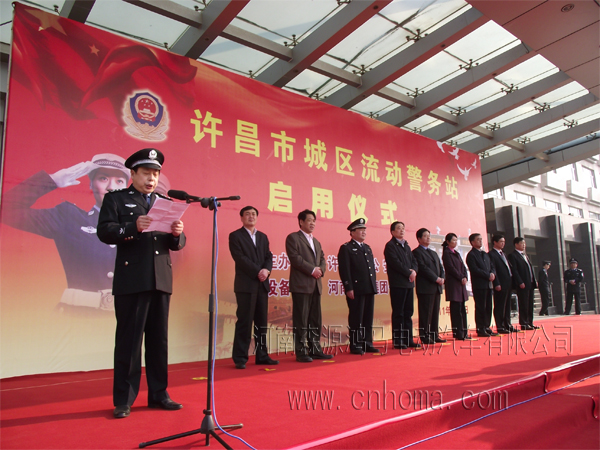 4月1日上午,鴻馬流動警務(wù)室電動警車巡邏車在河南許昌市公安局廣場舉行警企聯(lián)動保平安流動警務(wù)室進(jìn)城區(qū)流動警務(wù)站進(jìn)社區(qū)啟動儀式,10輛移動警務(wù)室集中進(jìn)社區(qū)村居開展治安巡邏。許昌市委書記李亞,長葛市委書記王文杰,許昌市副市長、公安局局長翟化夫 森源集團(tuán)董事長楚金甫等領(lǐng)導(dǎo)出席啟動儀式。公安分局黨委成員、各內(nèi)設(shè)機(jī)構(gòu)、直屬單位、派出所負(fù)責(zé)人,社區(qū)民警共300余人參加啟動儀式。