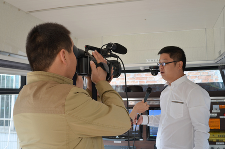 鴻馬工作人員為電臺(tái)記者介紹移動(dòng)警務(wù)室功能