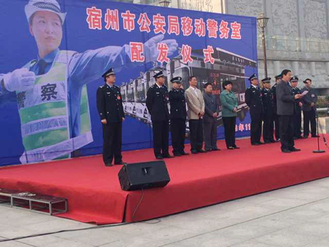 編者按:此次交付宿州市公安局使用的11臺移動警務(wù)室像一個可以移動的派出所、橋頭堡、現(xiàn)場指揮車,可以作為一款集打擊、防范、管理、服務(wù)等多功能于一體的移動工作平臺,做為警務(wù)前移和警務(wù)創(chuàng)新的一大突破,能夠不斷提升公安社會管理和創(chuàng)新能力,實現(xiàn)警力下沉、提高群眾見警率和人民群眾滿意度,更方便防控、布控和動態(tài)警務(wù),做到網(wǎng)格化管理與遠程調(diào)度指揮等功能,融固定執(zhí)勤崗?fù)ず鸵苿友策壾囕v多種功能于一身,集公安服務(wù)、執(zhí)法執(zhí)勤為一體,動靜結(jié)合,遠近互補,利用里邊配備的軟件和硬件設(shè)施,可以根據(jù)警情分析研判,按需投放警力,震懾犯罪,服務(wù)百姓,保一方平安。移動警務(wù)平臺投入使用后一定能成為我市乃至全省的一大亮點!