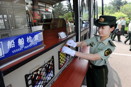 6月23日,工作人員在展示邊檢移動警務(wù)終端。該設(shè)備功能涉及邊檢錄入、查詢、驗(yàn)證、上傳、備案等綜合警務(wù)功能,具有極大的工作便捷性。當(dāng)日,“新境界新服務(wù)”山東省公安邊檢系統(tǒng)警務(wù)創(chuàng)新推廣運(yùn)用現(xiàn)場會在青島舉行,一批國內(nèi)該領(lǐng)域的新技術(shù)、新裝備集中展示。其中,運(yùn)用現(xiàn)代互聯(lián)網(wǎng)絡(luò)和信息技術(shù)的系列邊檢口岸驗(yàn)檢系統(tǒng)成為最大亮點(diǎn),其便捷和高效將極大提升我國邊檢口岸工作效率。新華社記者 李紫恒 攝