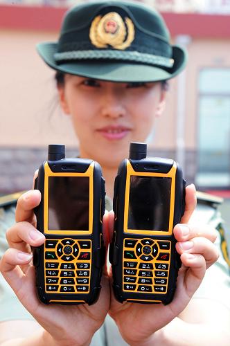6月23日,工作人員在展示新型3G對講機(jī)。該設(shè)備能基于3G網(wǎng)絡(luò)實(shí)現(xiàn)集群對講。新華社記者 李紫恒 攝