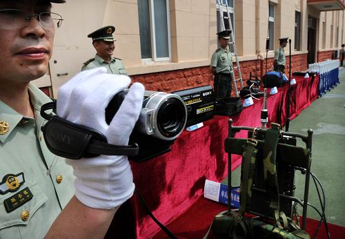 6月23日,工作人員在演示單兵移動可視系統(tǒng)。該系統(tǒng)可實(shí)現(xiàn)視頻連接指揮中心,實(shí)時(shí)遠(yuǎn)程監(jiān)控和指揮調(diào)度。新華社記者 李紫恒 攝