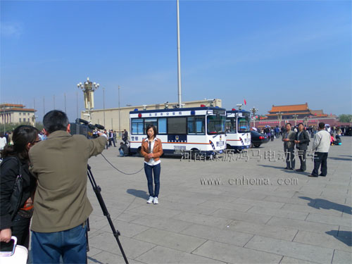 鴻馬流動警務(wù)室亮相北京天安門,高智能純電動流動警務(wù)室擁有高配置電腦公安系統(tǒng)專用信息傳輸系統(tǒng),內(nèi)室配置齊全高檔能更好服務(wù)市民。