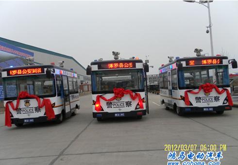 2012年3月7日下午,在鴻馬電動(dòng)汽車長(zhǎng)葛生產(chǎn)基地舉行了廣東惠州惠州博羅縣移動(dòng)警務(wù)室發(fā)車儀式。這是繼廣東惠州公安局“流動(dòng)警務(wù)室”、 中山市西苑社區(qū)派出所移動(dòng)警務(wù)室后發(fā)往博羅縣移動(dòng)警務(wù)室。